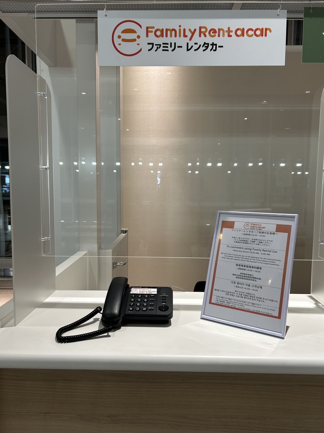 国際線にてご到着後、国際線ターミナルビル1階「レンタカーカウンター」にお越しいただき、カウンターに設置してある固定電話よりご到着のご連絡をお願いします。